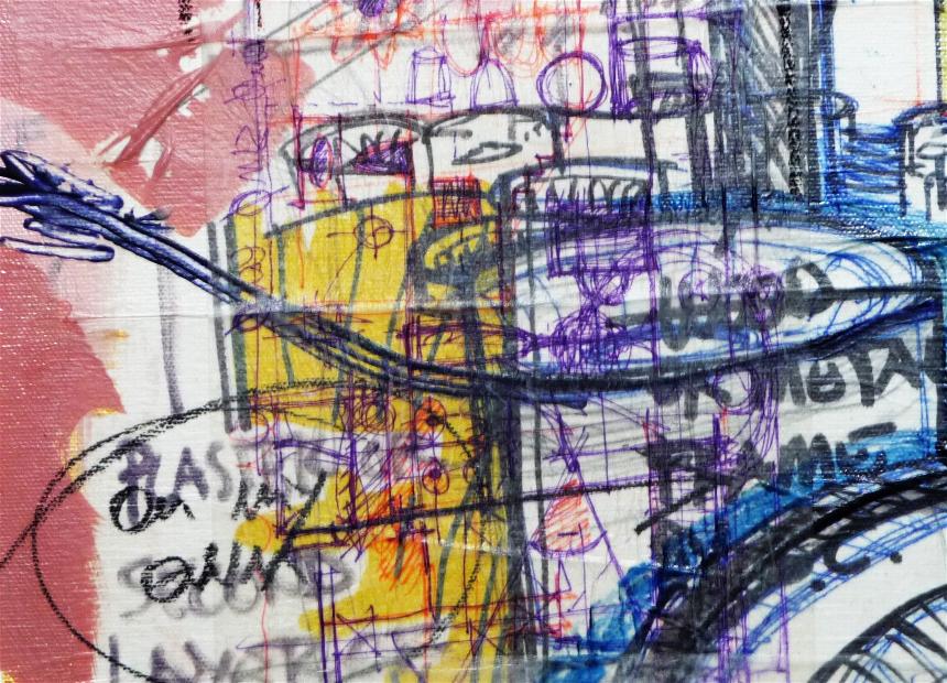 UNTITLED, 2010, ACRYLIC-"STRATICOLLAGE"-MIXED MEDIA ON CANVAS, 30"X24" (DETAIL)