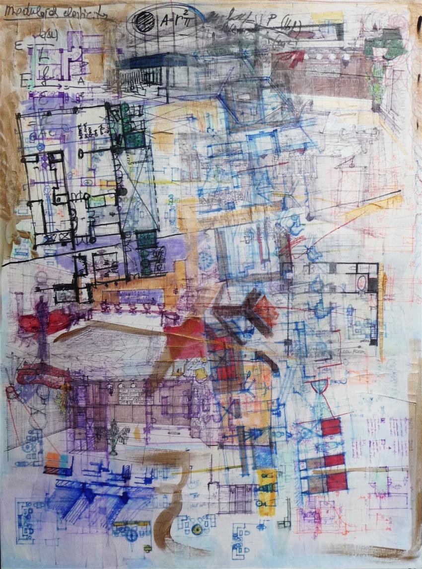 TRIPTIC 2 84"X 60" STARTICOLLAGE, ACRYLIC AND MIXEDMEDIA ON CANVAS
